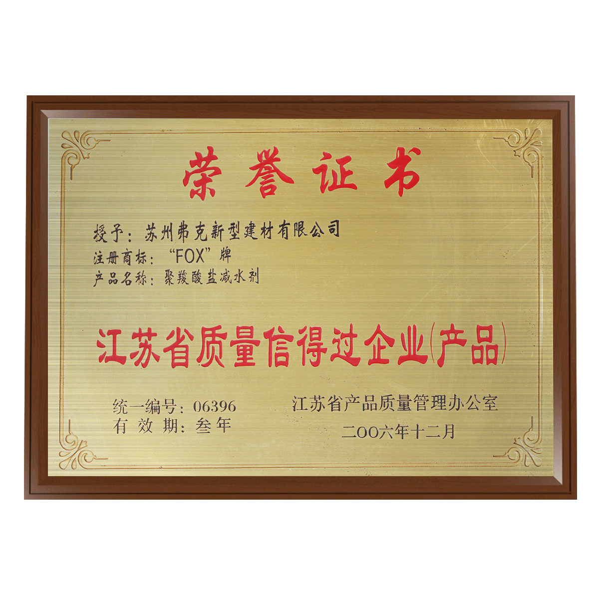 蘇州名牌產(chǎn)品證書